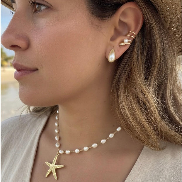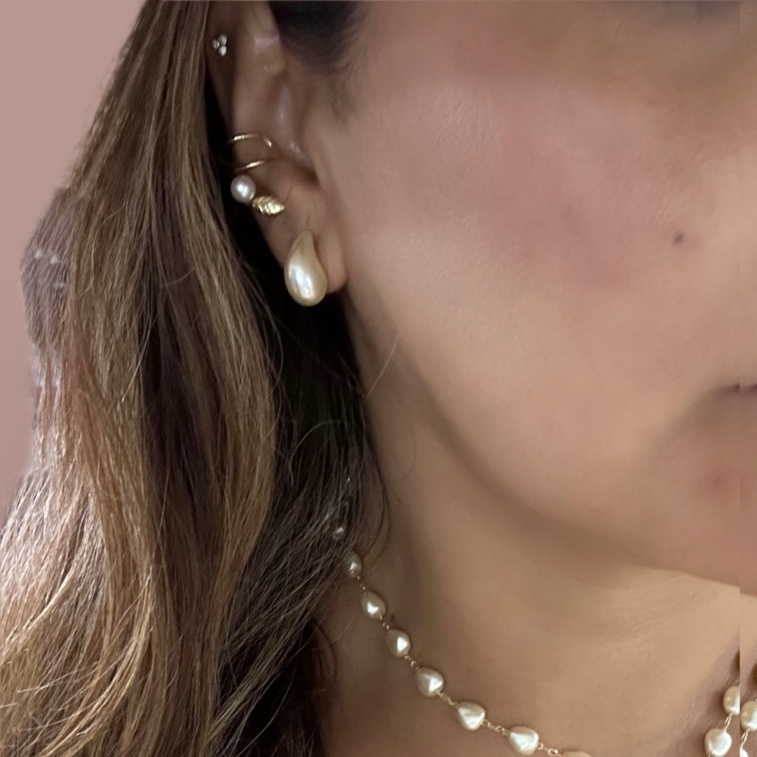 This elegant ear cuff features a single luminous pearl set on a sleek band, available in both gold and silver finishes. Crafted from .925 sterling silver and coated in high-quality gold plating for the gold option, it offers durability, shine, and everyday comfort—no piercing required. Perfect for adding a subtle hint of sophistication to any look, whether worn alone or stacked with other cuffs. Handcrafted jewelry .“ I design Meaningful Jewelry for the Strong, Independent and Confident woman who is not afraid to shine like the star she is"Couldn't load pickup availability